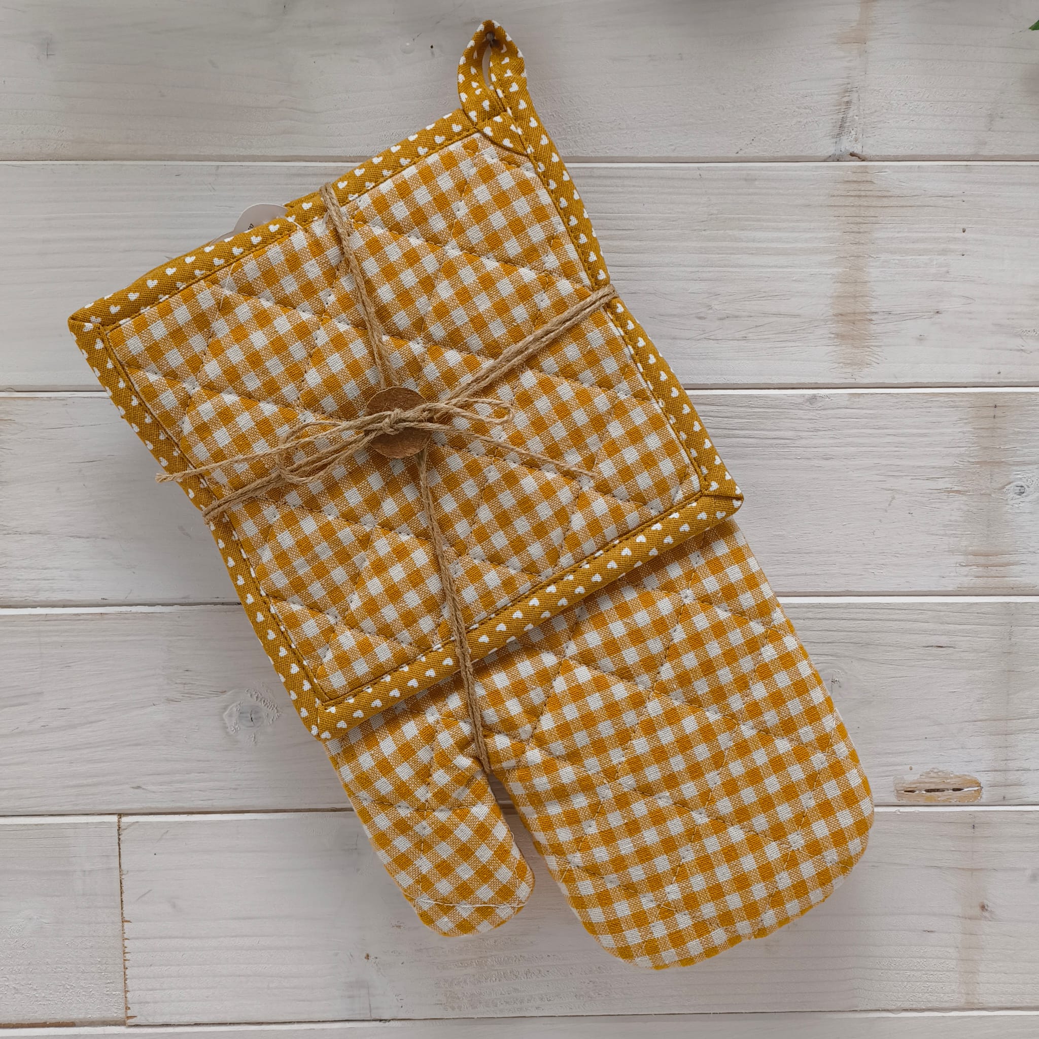 collezione Country Set Guanto/PresinaNDS Country Set guanto forno con presina, esterno in puro cotone, imbottitutra poliestere, tinto in filo. 13,90 € Set Presina/StrofinaccioNDS Country Set presina con strofinaccio, puro cotone, imbottitura poliestere. 13,90 €